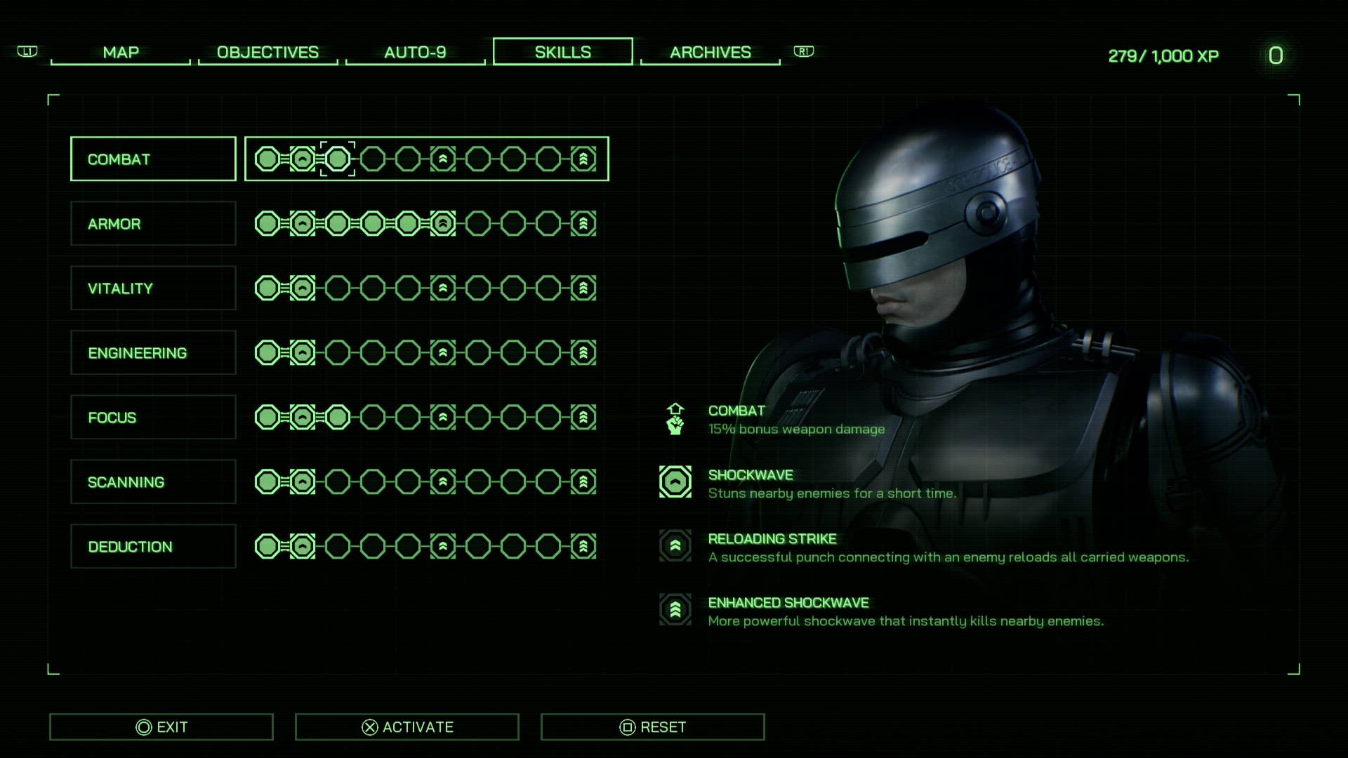 1. Robocopと彼のAuto-9銃の両方のアップグレードメニューは、基本的に元のゲームのメニューと同じです。 2。それはすべてのアクションではありません、このようなNPC「安全な」ハブは、少し没入感を促し、愚かなサイドミッションを開きます。 3。ゴア・ブライム! |画像クレジット:Eurogamer / Nacon