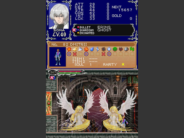 しかし、DS が提供するテクノロジーはどうなるのでしょうか?一般的に言えば、悲しみの夜明け興味深いリスクはあまりありません。ゲームプレイは下画面のみで行われ、上画面はインベントリのスナップショットか、はるかに便利なマップとして残ります。城内の移動がかつてないほど簡単になりました。